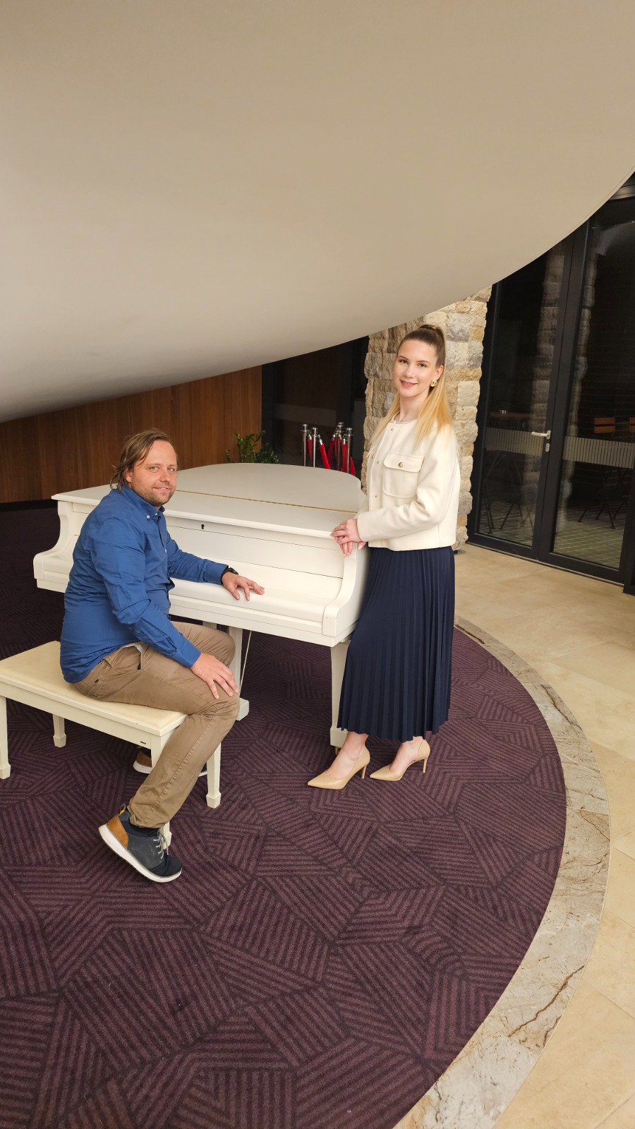 Vokalni duet s klavirjem in digitalnimi bobni na nogah za poročne obrede in kavarniške nastope.